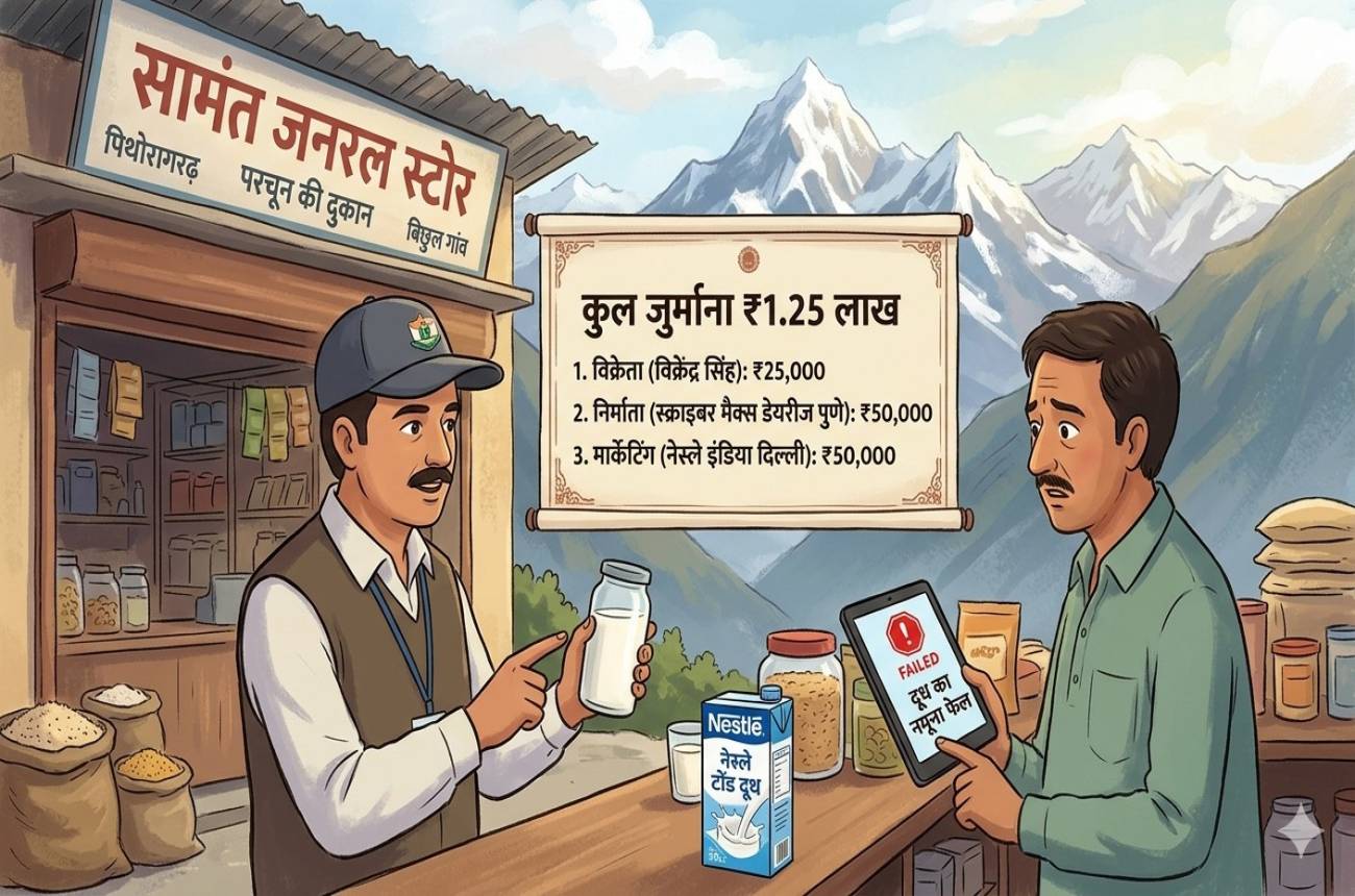 पिथौरागढ़। जिले के एक परचून की दुकान से भरा गया दूध का नमूना जांच में फेल पाया गया। इसके लिए न्यायालय ने विक्रेता निर्माता कंपनी और सप्लायर पर 1.25 लाख रुपए का जुर्माना लगाया है। खाद्य सुरक्षा विभाग के असिस्टेंट कमिश्नर आरके शर्मा ने बताया कि सितंबर 2019…