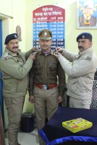 थल थानाध्यक्ष प्रकाश पांडे ने आज उन्हें स्टार लगाकर शुभकामनाएं दी और उम्मीद जताई कि वे भविष्य में भी कर्तव्य निष्ठा, ईमानदारी, अनुशासन के साथ अपने दायित्व का निर्वहन करते हुए जनपद पुलिस की गरिमा को नई ऊंचाइयों तक पहुंचायेंगे।