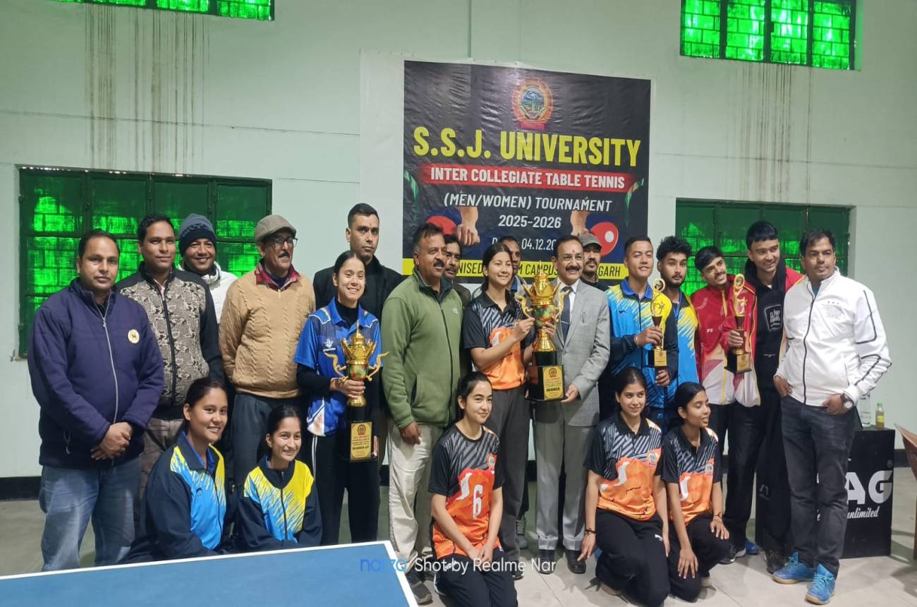 पिथौरागढ़। एल एसएम परिसर में आयोजित अंतर महाविद्यालय टेबल टेनिस प्रतियोगिता गुरुवार को खेली गई। महिला वर्ग में अल्मोड़ा विश्वविद्यालय परिसर की टीम पहले स्थान पर रही पिथौरागढ़ की टीम को दूसरा स्थान मिला। पुरुष एकल प्रतिस्पर्धा में लोहाघाट महाविद्यालय के सचिन बोरा विजयी रहे। पिथौरागढ के दीपक सिंह उपविजेता रहे। महिला वर्ग में अल्मोड़ा की जिज्ञासा बिष्ट विजेता और पिथौरागढ़ परिसर की लीला लवली उपविजेता रही। मुकाबले के निर्णायक हरेंद्र प्रसाद रहे। परिसर के निदेशक डॉ हेमचंद्र पांडे और विश्वविद्यालय के क्रीड़ा प्रभारी लियाकत अली ने खिलाड़ियों से परिचय प्राप्त कर उन्हें शुभकामनाएं दी। समापन अवसर पर मुख्य अतिथि अधिष्ठाता छात्र कल्याण डॉक्टर डी के उपाध्यक्ष ने विजेताओं को पुरस्कार प्रदान किये।