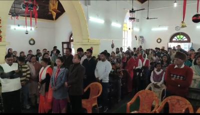पिथौरागढ़ जिले में क्रिसमस पर्व आज धूमधाम से मनाया गया। सिल्थाम स्थित मेथॉडिस्ट चर्च में पादरी अजीत पाल ने प्रार्थना कराई। महिलाओं ने यीशु के जन्म पर आधारित गीत गाये। युवाओं ने भी प्रभु यीशु के जीवन पर प्रकाश डालने वाले सुंदर गीतों की प्रस्तुति दी।
